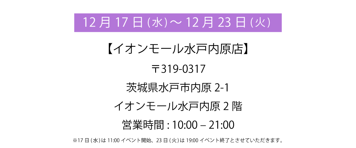 12月17日(水) ~12月23日(火) イオンモール水戸内原店